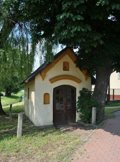 Kapliczka znajduje się przy ulicy Okólnej nad rzeką Biała Oksza. Jest to typowa kapliczka domkowa. Murowana, otynkowana budowla zbudowana na planie prostokąta. Na frontowej ścianie kapliczki znajdują się elementy zdobnictwa wraz z rzema wnękami na figurki świętych.