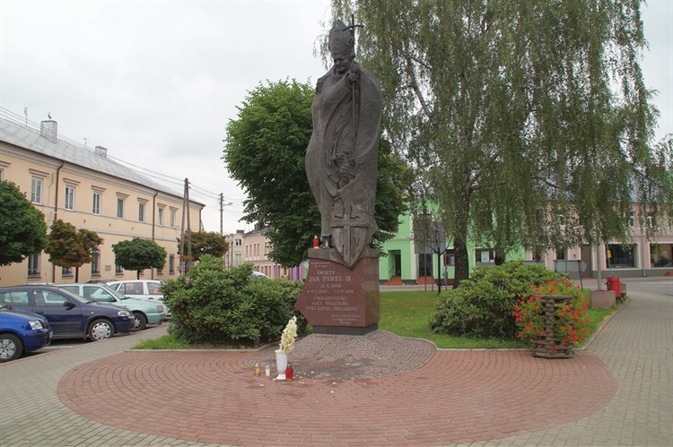 Na niewielkim skwerze znajdującym się pomiędzy placem Józefa Piłsudskiego a kościołem Niepokalanego Poczęcia NMP w Rawie Mazowieckiej znajduje się pomnik Ojca św. Jana Pawła II. Powstał on z inicjatywy Przewodniczącego Rady Miasta Wojciecha Skoczka. Pomysł jednogłośnie został zaakceptowany przez mieszkańców, aby w ten właśnie sposób uczcić pamięć o Wielkim Polaku.