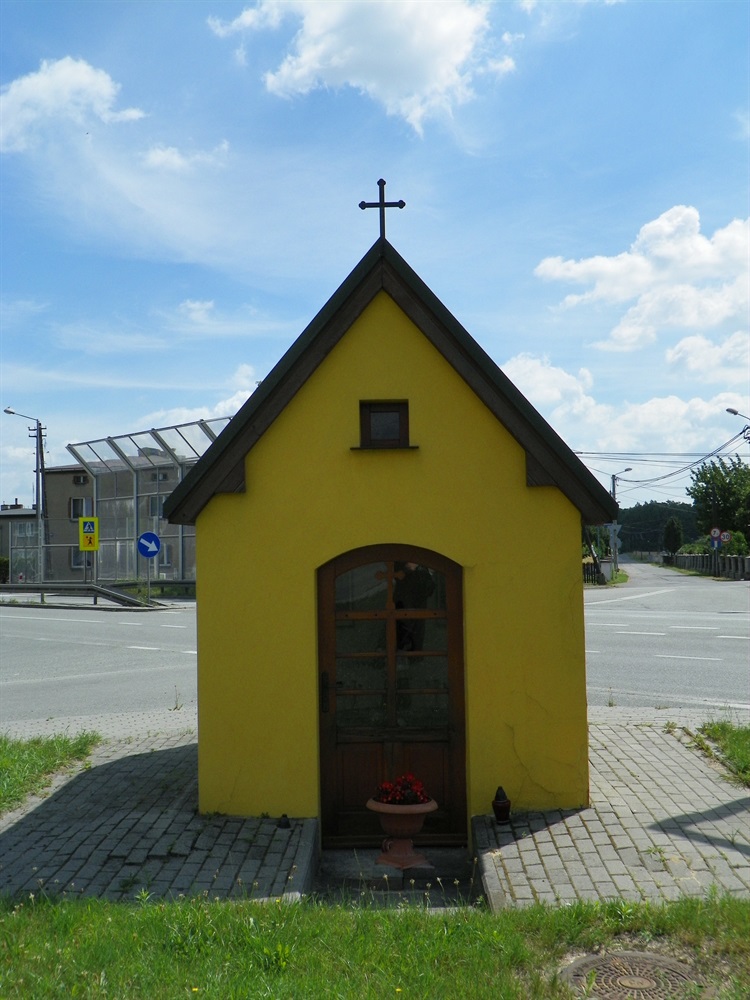 Przy skrzyżowaniu ulic Katowickiej i Centralnej (to część DK 81 relacji Katowice-Skoczów i odwrotnie), prawie naprzeciwko współczesnego kościoła z lat 1986-91 pw. św. Maksymiliana Kolbego, stoi sobie mała kapliczka, ufundowana przez gminę Gardawice.