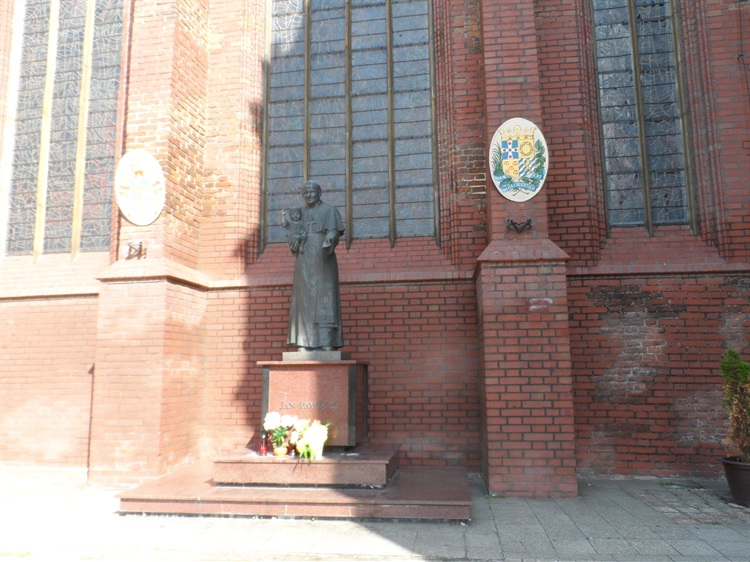 Pomnik Jana Pawła II znajduje się przy kościele św. Brygidy. Przedstawia postać papieża trzymającego w prawej ręce dziecko. Został odsłonięty w 1984 r.