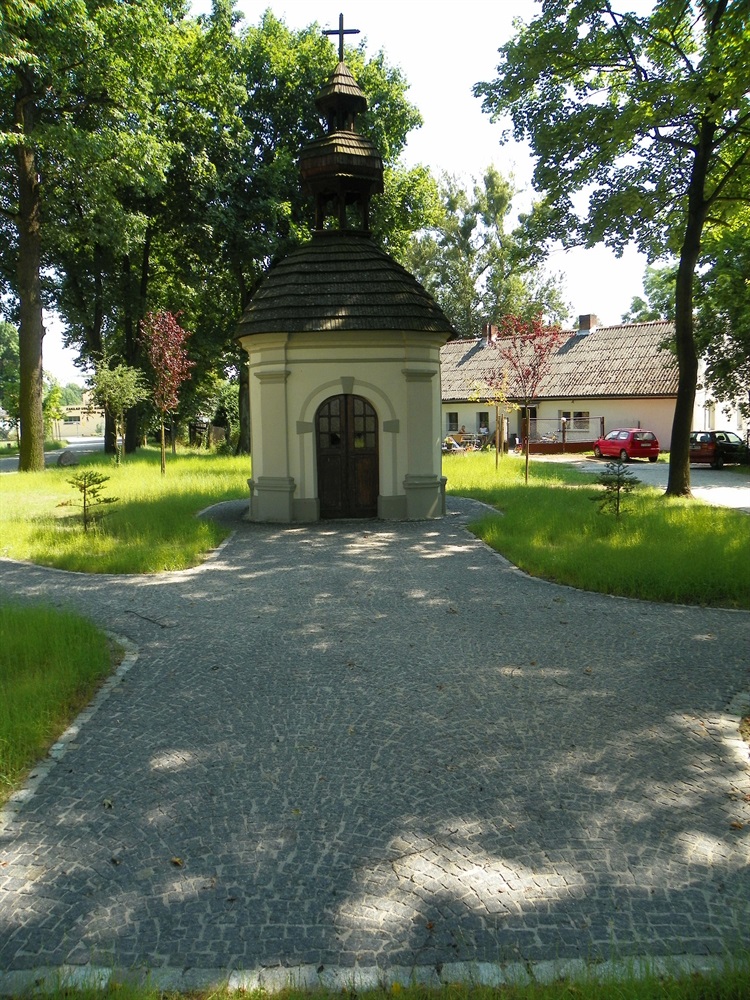 Na terenie właściwie resztek dawnego parku zamkowego stoi kapliczka poświęcona Najświętszemu Sercu Pana Jezusa. Według historyków datuje się ją na II połowę XVII wieku, z przebudową ok. 1794 roku, przypuszczalnie w stylu barokowym. Znajduje się wśród dawnych drzew tworzących park, co tworzy całkiem sympatyczne otoczenie.