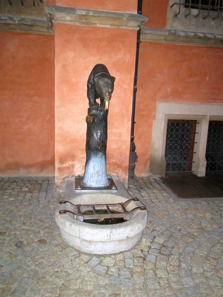 Historia fontanny „Niedźwiadek” sięga 1902 roku. Jej autorem był berliński rzeźbiarz Ernst Moritz Geyger. Na Rynku stanęła 17 sierpnia 1904 roku.