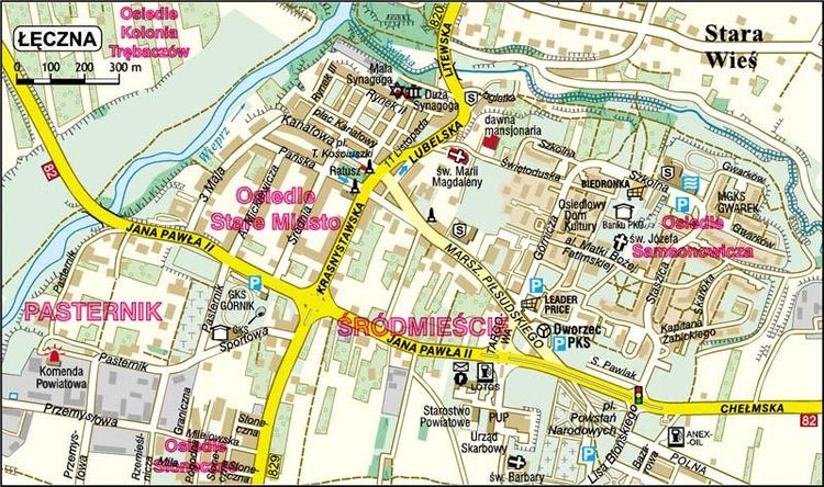 Od średniowiecznych początków miasta głównym placem Łęcznej był rynek, zwany dzisiaj placem Tadeusza Kościuszki. W XVII i na początku XIX w. dla usprawnienia handlu bydłem powstały dodatkowe rynki: II i III. Obecnie nie pełnią funkcji placów targowych, ale wyróżniają Łęczną spośród innych polskich miast podobnej wielkości. Łęczna od czasu uruchomienia kopalni węgla kamiennego w niedalekiej Bogdance stała się miastem górniczym. Stare centrum nie jest w tej chwili śródmieściem miasta, które przesunęło się w kierunku wschodnim, w stronę nowych osiedli wybudowanych dla górniczych potrzeb. Warto wstąpić do Muzeum Regionalnego położonego w starej części miasta. Mieści się w dawnej XVII-wiecznej synagodze, w której zachowały się aron ha-kodesz (szafa ołtarzowa do przechowywania Tory) i bima (podwyższenie pośrodku męskiej sali, z pulpitem do czytania Tory). Wnętrza zdobią częściowo zachowane renesansowe sztukaterie i polichromie. W muzeum oprócz judaików zgromadzono też eksponaty związane z dziejami miasta i regionu.