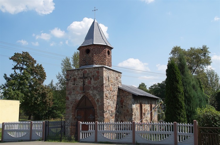 Choć wieś nie jest wielka za to "bogata" jest w zabytki, z których większość jest już opisanych na portalu. Przy w/w drodze nr 481, w samym centrum wsi znajduje się dawna kaplica dworska. Wzniesiona z kamienia i cegły z wieżyczką na której znajduje się data 1903 r. oraz inicjały. Wchodziła ona w skład dawnego zespołu dworsko-parkowego z XIX w. Obiekt jest zadbany i jak poinformowała mnie mieszkanka miejscowości kaplica pełni funkcję sali katechetycznej.