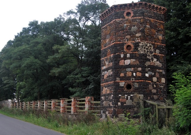 W północno-zachodniej części zespołu parkowo - pałacowego zachowała się sześciokątna baszta widokowa zbudowana z kamienia przemojskiego. Powstała w XVIII w. Do budowli prowadzi wejście od strony parku. Budowla posiada sześć symetrycznych okrągłych otworów. Baszta nie jest zadaszona.