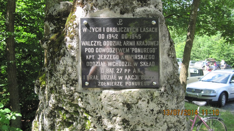 Pomnik pamięci walk oddziału Armii Krajowej pod dowództwem kpt. Jerzego Kurpińskiego "Ponurego". Oddział działał w okolicznych lasach w latach 1942-1945. Pomnik znajduje się blisko ruin Zamku Ostrężnik, przy parkingu na skrzyżowaniu drogi 793 z drogą biegnącą na Zrębice.