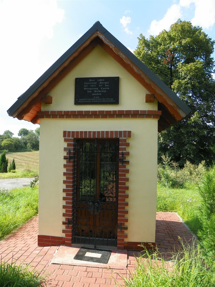 Kapliczka według niektórych “źródeł” pochodzi z roku 1806, inne zaś mówią o roku 1807, a pod jej podłogą znajduje się mogiła 12. żołnierzy bawarskich, poległych podczas oblegania twierdzy “Koźle” w okresie 22.01.-16.07.1807 roku. Pierotnie na kapliczce widniał napis o treści: “Tu spoczywają żołnierze bawarscy, którzy w latach 1806-1807 polegli śmiercią bohaterów podczas oblężenia Koźla”.