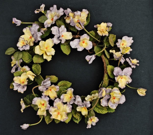 Te niezwykle misterne wieńce powstały w wiedeńskich i paryskich manufakturach ponad sto lat temu. Do Sieniawy, gdzie znajduje się rodowa krypta Czartoryskich, przywiezione zostały wraz z trumnami zmarłych poza granicami kraju członków rodziny. W latach 80. XX w. na paciorki i porcelanowe kwiaty walające się po podłodze krypty zwrócili uwagę pracownicy Ministerstwa Kultury, którzy przyjechali do Sieniawy, by zaplanować remont krypty. To dzięki nim wieńce trafiły nie na śmietnik, lecz do pracowni konserwatorskiej, gdzie po czterech latach niezwykle żmudnej pracy odzyskały dawny blask.