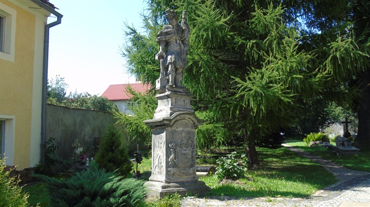 Piaskowcowa, barokowa figura św. Floriana pochodzi z pierwszej połowy XVIII wieku. Wykonana została w pracowni Georga Leonharda Webera, doskonałego rzeźbiarza działającego na Śląsku na przełomie XVII i XVIII wieku. Rzeźbę wykonano na zamówienie zamożnej arystokratycznej rodziny Schaffgotschów będącej właścicielem wielu śląskich majątków. Herb rodowy tej rodziny widnieje na cokole.