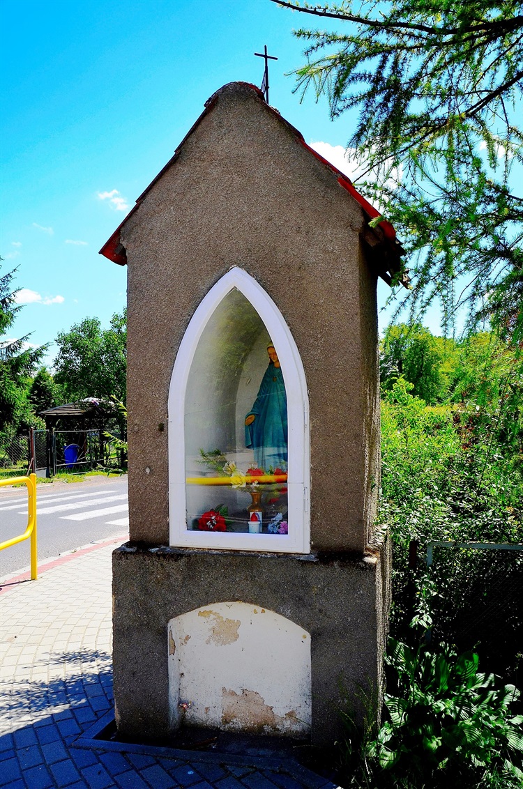 Ulica Olsztyńska jak sama nazwa wskazuje to trakt łączący Barczewo z drogą krajową nr 16 i dalej z Olsztynem. Na rogu skrzyżowania kierującego do miejscowości Mokiny swoje miejsce znalazła niewielka kapliczka wybudowana najprawdopodobniej w ostatniej ćwierci XIX w. To bardzo skromna budowla z jedną ostrołukową przeszkloną wnęką zawierającą dużą figurę Maryjną. Przykrywa ją dwuspadowy daszek z czerwonej dachówki o dość ostrym nachyleniu.