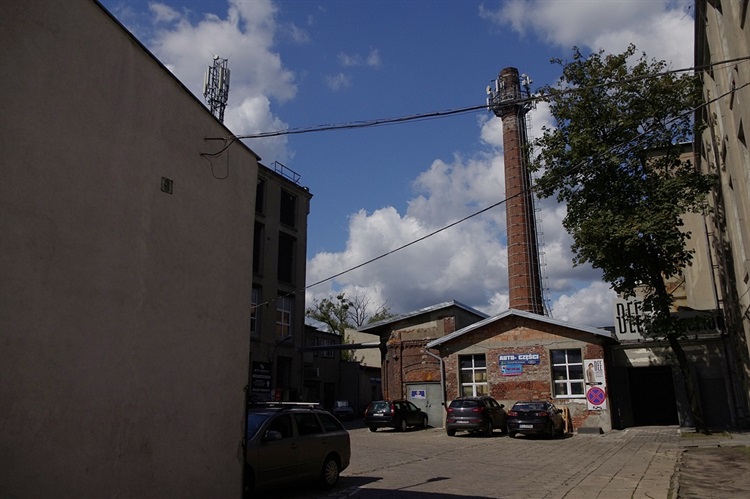 Na tej samej nieruchomości co willa Aleksandra Adamskiego vel Hirsza Damskiego znajduje się jego była fabryka. Data jej powstania sięga roku 1895, kiedy to powstała tu farbiarnia i wykończalnia tkanin wełnianych. Pierwszy właściciel zatrudniał 78 robotników, zaś roczny obrót wynosił 155 tyś. rubli. W 1904r. nowym właścicielem został Hanftwurzel i S-ka.