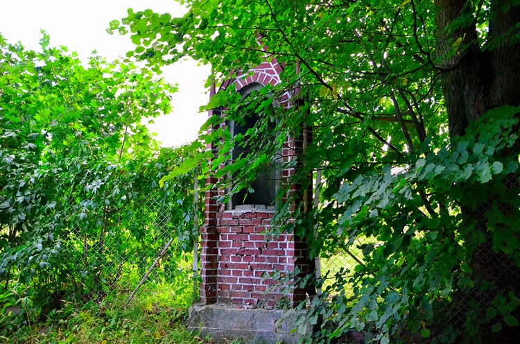 Znajduje się tu bowiem neogotycka kapliczka, wkomponowana w ogrodzenie prywatnej posesji, pochodząca z końca XIX w. To typowa budowla dla tego okresu, murowana z czerwonej cegły licowej, z czterech stron przypory przechodzące w szpiczaste sterczyny w szczycie. Od frontu duża i głęboka półkolista wnęka na figurę, niestety pusta, całość przykryta dwuspadowym daszkiem ozdobionym skromnym elementem neogotyckim. Kapliczka generalnie jest w dobrej kondycji ale raczej nie jest obiektem często odwiedzanym. Usytuowana jest przy gruntowej drodze prowadzącej do wsi Kaplityny.