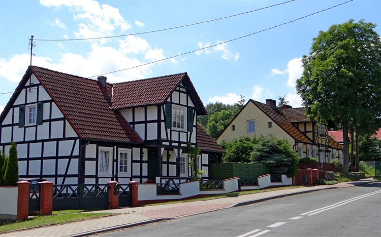 W 1822 r. wybuchł potężny pożar, który strawił niemal całą zabudowę łącznie z kościołem. Nowe wolnostojące chałupy stawiano głównie w konstrukcji ryglowej. Pod koniec XIX w. zaczęto tu nawet budować domy o charakterze letniskowym. Mimo zniszczeń jakie powstały w związku z działaniami wojennymi wiosną 1945 r. (forsowanie Odry), wieś zachowała czytelny układ wielodrożnicowy oraz kilkanaście pięknych dziewiętnastowiecznych budynków. Są wśród nich chałupy szachulcowe i szachulcowo-murowane, są stare stodoły, dawna plebania i murowany budynek szkoły. Wiele z nich wpisano do rejestru zabytków oraz do gminnej ewidencji tychże.