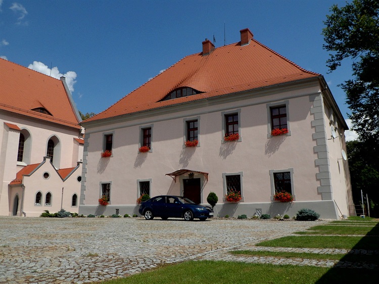 Obiekt ten wzniesiono na miejscu wcześniejszego w latach 1697-1699, w czasie przebudowy kościoła zleconej przez opata żagańskiego Andreasa Adalberta Thiela. Budynek reprezentuje barokową architekturę. Liczący dwie kondygnacje nakryty został czterospadowym dachem. We wnętrzach zachowały się sklepienia i sztukaterie. Odrestaurowany w ostatnich latach zabytek jest doskonałym przykładem budownictwa ery baroku.
