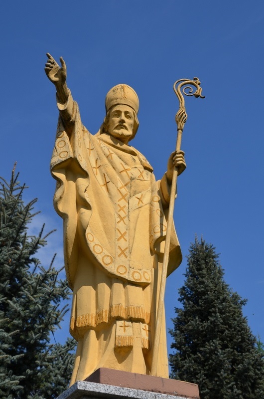 Nazwa wsi ściśle wiąże się z osobą św. Wojciecha, który według miejscowych legend i podań w X wieku miał w tych okolicach głosić Słowo Boże. Zatrzymał się również w Wojciechowie, co sprawiło, że miejscowość nazwano na cześć świętego. W 1997r., w 1000 rocznicę śmierci patrona wsi, postawiono na jego cześć pomnik z figurą świętego. Opisywany obiekt znajduje się przy miejscowej piekarni, niedaleko skrętu do Łowoszowa.