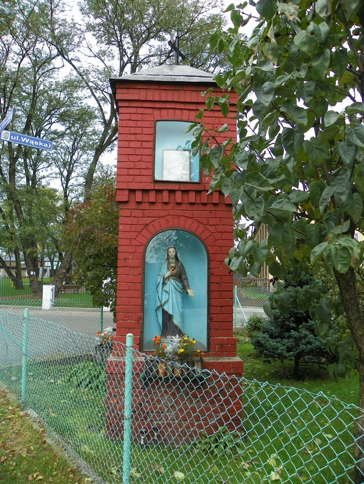 Na prywatnej posesji przy ul. Gliwickiej w Toszku, przy wjeździe do miasta stoi sobie taka ceglana kapliczka. Osadzona została na ceglanej podstawie z cokolikiem.
