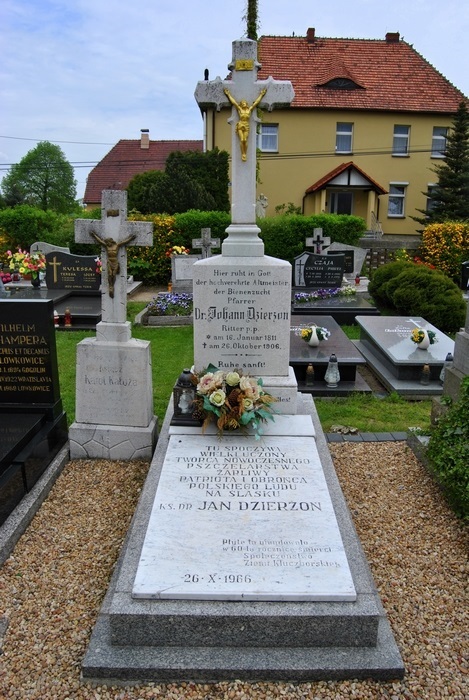 Pomnik znajduje się na cmentarzu w Łowkowicach. Na murze tutejszego kościoła widnieje również pamiątkowa tablica ku pamięci Dzierżona z 2006 r. - z okazji setnej rocznicy naukowca.