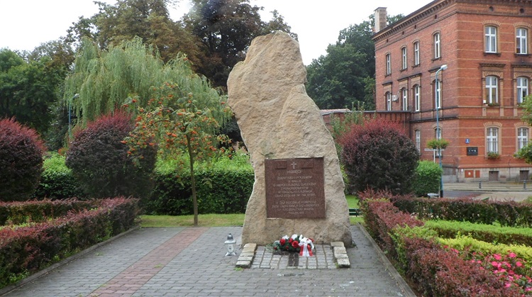Właśnie pamięć żołnierzy polskich uczczono tutaj pomnikiem odsłoniętym w 50 rocznicę powrotu ziem zachodnich do Polski. Obelisk poświęcono poległym na frontach, zamordowanych w obozach i łagrach oraz zesłańcom na Sybir. Pomnik, który stoi na skwerze pomiędzy ulicami Chmielną i Królowej Jadwigi składa się z piaskowcowej, nieregularnej płyty oraz wmurowanej w nią tablicy.