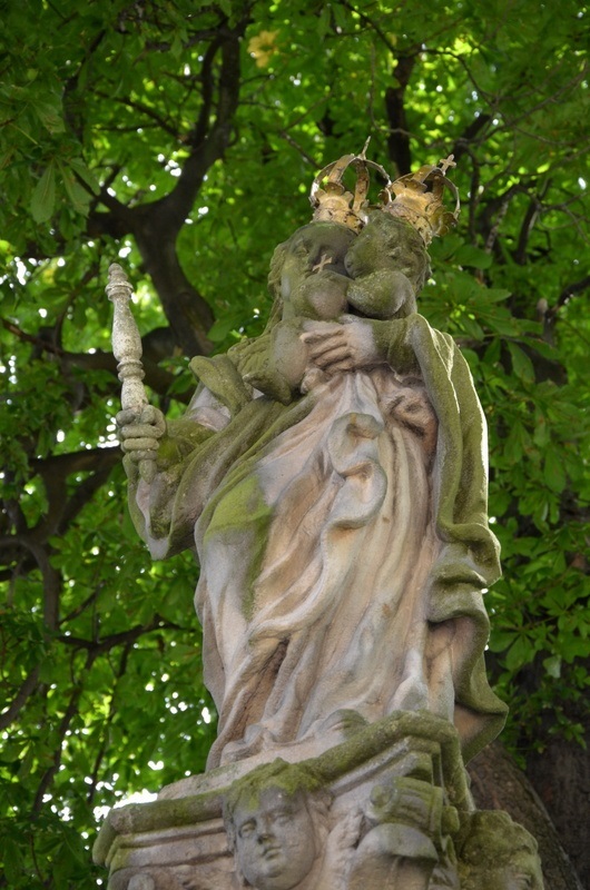 Na ul. Wiejskiej, na niewielkim wzniesieniu usytuowana jest barokowa figura wotywna Matki Boskiej z Dzieciątkiem. Figura fundacji Johana Klappera została wykonana z kamienia piaskowego w 1709 r. Ustawiona jest na ozdobnej głowicy kolumny, stojącej na prostokątnym cokole. Zarówno Matka Boska oraz Dzieciątko przedstawione są ze złotymi koronami na głowach. Ponadto Matka Boska trzyma w prawej ręce berło, a w lewej Dzieciątko, które przytrzymuje lewą ręką jabłko ze złotym krzyżykiem leżące na jego nogach. Na cokole wyryta jest data powstania figury oraz nazwisko i imię jej fundatora.