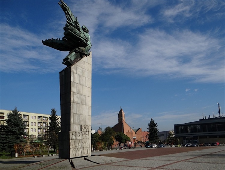 W 1971 r. na planie miasta znalazł swoje miejsce Plac Tysiąclecia. Jego dominantą był Pomnik Zwycięstwa i Wolności autorstwa Mariana Konarskiego, mający upamiętniać poległych w walkach mieszkańców Chrzanowa i okolic. Na 9,5 metrowym cokole, ozdobionym w dolnej partii płaskorzeźbami umieszczono sylwetę orła wykonaną z dwumilimetrowej blachy miedzianej. Podobno usadowienie go na cokole nie należało do łatwych i trwało aż dwa tygodnie.