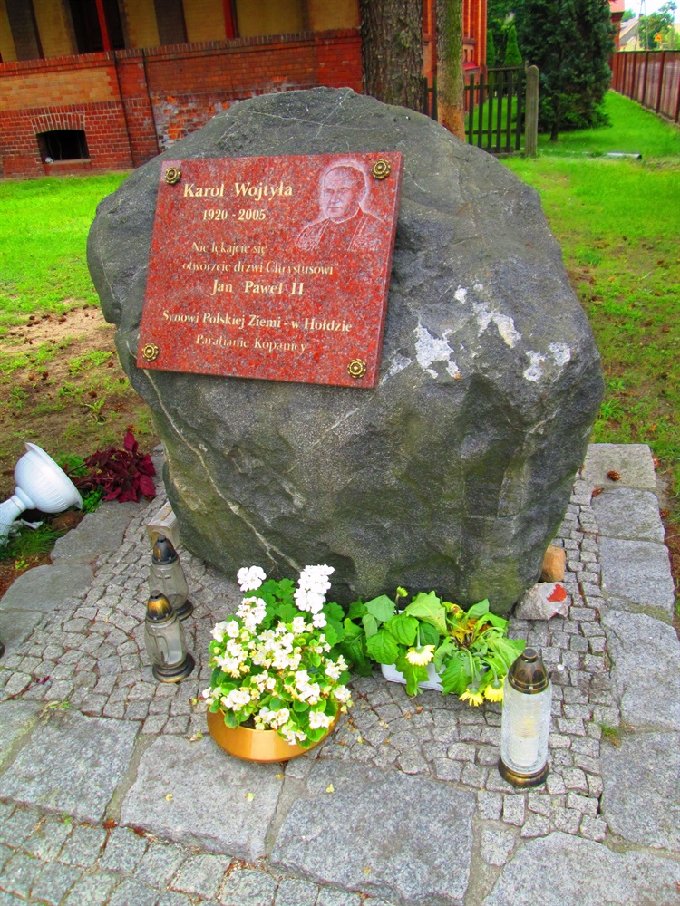 Przy kościele pw. Najświętszej Maryi Panny Wniebowziętej w Kopanicy znajduje się głaz z tablicą pamiątkową poświęconą papieżowi Janowi Pawłowi II. Monument ufundowali miejscowi parafianie. Na tablicy umieszczono napis: „Karol Wojtyła 1920-2005, Nie lękajcie się, otwórzcie drzwi Chrystusowi, Jan Paweł II, Synowi Polskiej Ziemi – w Hołdzie Parafianie Kopanicy”. Z prawej strony widoczna jest podobizna Jana Pawła II.