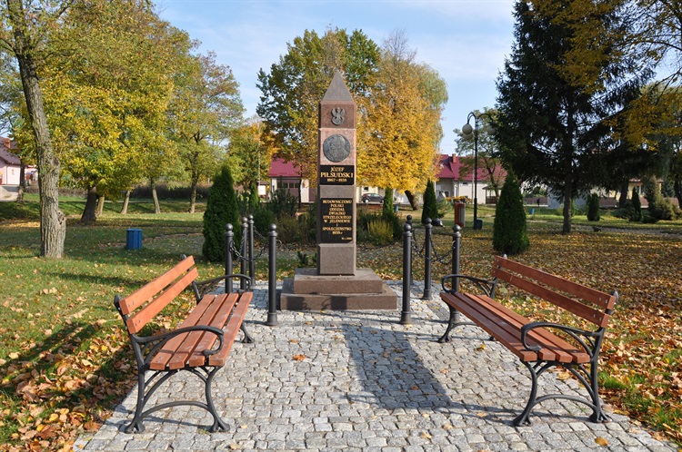 Pomnik ku czci Marszałka Józefa Piłsudskiego pierwotnie odsłonięto 17 marca 1935 roku dzięki staraniom Oddziału Związku Strzeleckiego w Jeleniewie oraz poparciu miejscowego społeczeństwa. Wykonany był z granitu w kształcie obelisku. Górę zdobił orzeł, a w środkowej części umieszczone było popiersie Marszałka Piłsudskiego z napisem: „Budowniczemu Polski Oddział Związku Strzeleckiego w Jeleniewie i społeczeństwo 1935”. Po II wojnie światowej z pierwotnego pomnika ocalały jedynie dwa bloki granitowe. Dzięki staraniom Suwalskiego Stowarzyszenia Miłośników Historii „Penetrator”, Andrzeja Giedrojcia z Wołowni oraz Urzędu Gminy Jeleniewo pomnik został odbudowany i odsłonięty 11 maja 2014 roku.