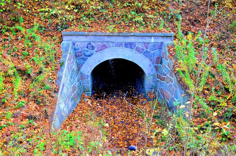 Widocznym elementem dawnych zabudowań kolejowych, prócz budynku stacyjnego, są tunele pod torami. To konstrukcje murowane o kształcie półkolistym, otwarte wejście z dwóch stron nasypu. Takie miejsca często możemy spotkać zwłaszcza na starych kolejowych trasach Prus Wschodnich, używane były głównie jako kanały przepływowe dla niewielkich cieków wodnych.