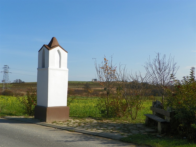 Przy ul. Księdza Piotra Ściegiennego, na skraju jednego z pól sąsiadującego z łąką, stoi murowana, otynkowana kapliczka słupowa. Przekryta jest łamanymi połaciami zwieńczonymi na swych kalenicach ostrosłupowym daszkiem. Ściany boczne, a także ściana tylna posiadają blendy i nie są niczym zdobione. Ściana frontowa posiada wnękę, w której umieszczona jest na niewysokim postumenciku mała figura św. Jana Nepomucena, dostosowana wysokością do wysokości wnęki frontowej. Kapliczka przypuszczalnie została ufundowana przez górników miejscowej kopalni galmanu.
