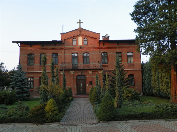 Budynek jest zbudowany z cegły pełnej koloru czerwonego, jest nieotynkowany, przekryty dachem dwupołaciowym. Elewacja główna podzielona jest ryzalitem, który sięga swą wysokością ponad kalenicę dachu i zwieńczony jest krzyżem trójlistnym. Ściana szczytowa zakończona jest uskokowymi zdobieniami wykonanymi z cegły. Przy otworze drzwiowym widoczne są pilastry z głowicami wykonanymi przypuszczalnie z piaskowca lub z materiału kamiennego o roślinnych motywach, podtrzymują płytę balkonową. Pierwszą i drugą kondygnację dzieli ozdobny, ceglany, międzypiętrowy gzyms, a drugą a poddasze - przypuszczalnie użytkowe - oddziela linia ceglanego fryzu. Okna w otworach okiennych zakończone są półokrągło.