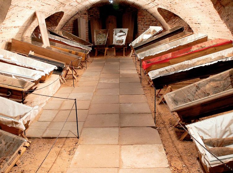 Czwarta placówka muzealna Brodnicy znajduje się poza starą częścią miasta, w kościele poreformackim, obecnie Franciszkanów, przy ulicy Sądowej. Świątynia wraz z klasztorem pochodzi z drugiej połowy XVIII w. Franciszkanie byli tu gospodarzami do kasacji zarządzonej przez Prusaków w 1839 r. Wrócili do Brodnicy w 1947 r. W okresie letnim zwiedzający mogą wejść do krypty kościoła. Znajduje się tutaj 70 trumien, w których pochowano 28 franciszkanów oraz kilkudziesięciu mieszkańców Brodnicy i okolic. Pochówki miały miejsce w latach 1765-1831. Dzięki panującym w krypcie szczególnym warunkom, ciała zmarłych uległy wysuszeniu, naturalnemu zmumifikowaniu. Kilkanaście trumien wyeksponowano. Pozostają otwarte, przykrywają je tylko szklane tafle. Można zobaczyć ludzkie zwłoki spoczywające na wyściółce z drewnianych wiórów. W części pochówków zachowały się zetlałe ubiory, w jakich zmarli byli pochowani. Z powodu braku dokumentów udało się ustalić nazwiska tylko dwojga nieboszczyków. W trumnach znajdujących się blisko wejścia, po prawej stronie krypty, spoczywają: starosta brodnicki Józef Pląskowski i jego żona Rozalia z Czapskich. Zwiedzanie podziemi kościoła Franciszkanów pozostawia silne wrażenia. Wizytę tutaj polecamy tylko dorosłym. Wstęp odradzamy osobom wrażliwym i niesprawnym ruchowo. Do krypty prowadzi bardzo ciasne wejście.