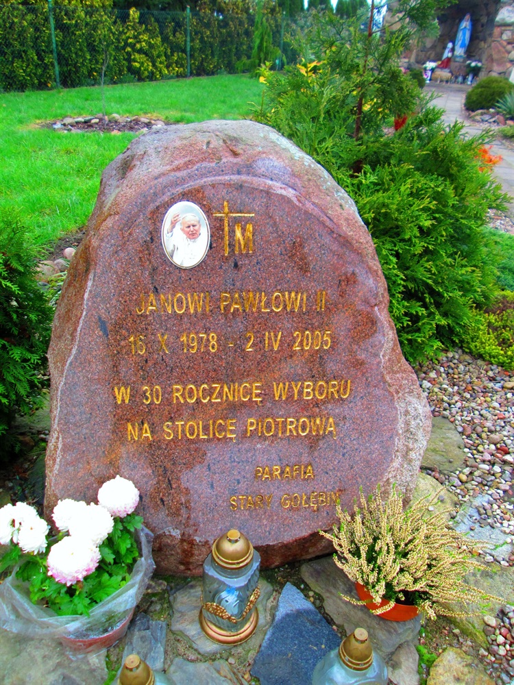 Przy kościele pw. Wniebowzięcia NMP w Starym Gołębinie znajduje się miejsce upamiętniające Jana Pawła II. Jest to obelisk ufundowany przez parafian w 30 rocznicę wyboru Karola Wojtyły na papieża. W górnej części widoczny jest medalion z podobizną Jana Pawła II. Niżej umieszczono napis: „Janowi Pawłowi II, 16 X 1978 – 2 IV 2005, w 30 rocznicę wyboru na Stolicę Piotrową, Parafia Stary Gołębin”.