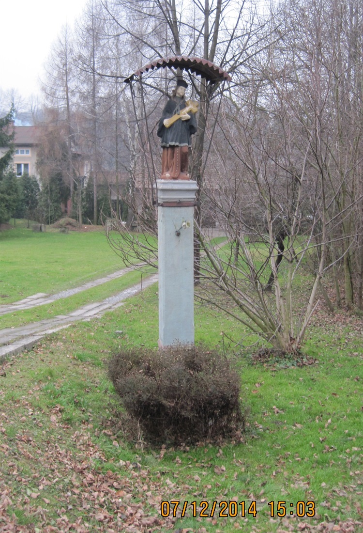 Figura znajduje się przy drodze na wysokości ul. Legionów 96. Pomnik pochodzi z XVIII / XIX w. Jest bardzo podobny i mylony na zdjęciach z pomnikiem przy kościele Św. Katarzyny.