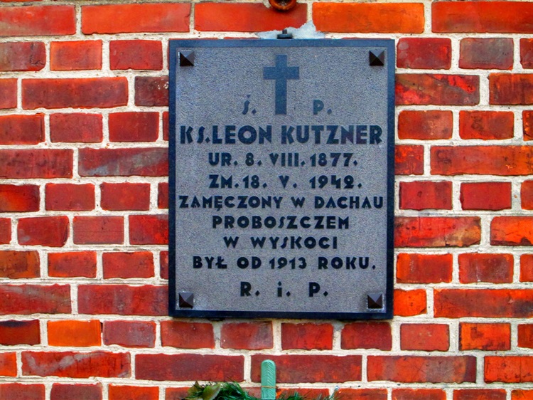 Na murze kościoła p.w. św. Andrzeja Apostoła w Wyskoci znajduje się tablica upamiętniająca księdza Leona Kutznera. Ksiądz Leon Kutzner urodził się 8 sierpnia 1877 roku w Poladowie. Święcenia kapłańskie otrzymał w dniu 1 grudnia 1902 roku. Od 1 grudnia 1913 roku był proboszczem w Wyskoci. 6 października 1941 roku został aresztowany i wywieziony do obozu koncentracyjnego w Dachau, gdzie został zamordowany w komorze gazowej dnia 18 maja 1942 roku.