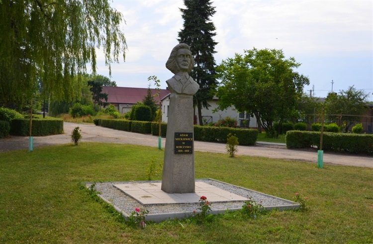 Popiersie Adama Mickiewicza wykute w kamieniu piaskowym jest dziełem artysty ludowego z Włoszakowic Leona Dudka. Popiersie wieszcza wieńczące cokół, na którym pierwotnie widniał napis o treści " Adam Mickiewicz w Wielkopolsce 1831-1832". Podczas ostatniej renowacji pomnika usunięty został stary napis i zastąpiony nowym o treści "Adam Mickiewicz w Robczysku 1831-1832".