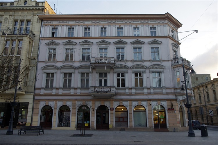 Na skrzyżowaniu ulic Piotrkowskiej 124 i Nawrot 2 znajduje się trzypiętrowa kamienica mieszczańska Tischera Engelberta. Zbudowano ją w 1889 roku według planów Hilarego Majewskiego. W latach 1891-1892 została rozbudowana wg. projektu Gustawa Landau - Gutentegera. Wówczas kamienicy przedłużono skrzydło wzdłuż ul. Nawrot. W oczy rzucają się zróżnicowane zdobienia w stylu pseudobaroku. Obecnie na parterze znajdują się sklepy i lokale użytkowe.