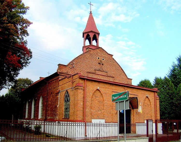 W odległości kilku kilometrów na południe od Pabianic stoi niewielki kościół będący świątynią parafii dekanatu dłutowskiego. Jego adres Dąbrowa - Pawlikowice 7 wskazuje na to, że jest usytuowany na skrzyżowaniu dwóch wsi: Dąbrowa i Pawlikowice. Wejście do kościoła znajduje się bowiem od strony południowej w Pawlikowicach, natomiast na teren plebanii wchodzi się od strony wschodniej w Dąbrowie.