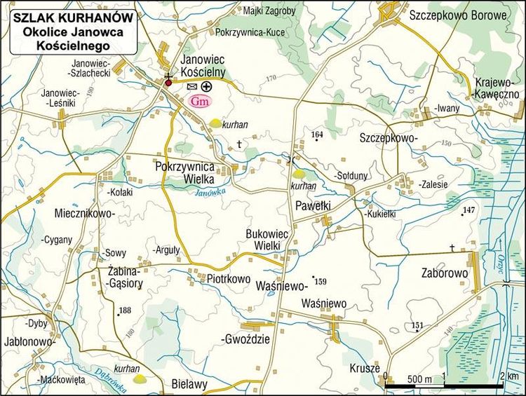 Ziemia poborzańska skrywa wyjątkowo dużo zabytków archeologicznych. Specjaliści zaliczają ten teren do najciekawszych pod tym względem w Polsce. Poza okazałym grodziskiem wczesnośredniowiecznym w Grzebsku występuje tu wyjątkowe nagromadzenie cmentarzysk rodowych i starożytnych kurhanów. Staraniem uczniów Zespołu Szkół w Janowcu Kościelnym oznakowano cztery wybrane stanowiska archeologiczne. Położone w niedalekiej odległości od siebie, zachęcają do odbycia ciekawej wycieczki szlakiem poborzańskich kurhanów. Przy każdym z obiektów znajduje się tablica z tekstem fachowo opisującym stanowisko archeologiczne. Oznakowano trzy kurhany z okresu kultury wielbarskiej, a więc powstałe po II w. n.e., oraz jedno cmentarzysko grobów w obudowie kamiennej z XI-XII w. Najbardziej okazały kurhan, czyli starożytna mogiła z Bielaw, ma u podstawy 25 m średnicy i wysokość ok. 4 m. Mimo porastającej jego stoki roślinności widać, że jest kamiennym nasypem. Archeolodzy, którzy badali jego wnętrze, stwierdzili obecność kręgów uformowanych z wielkich głazów otaczających komorę grobową. Najwyraźniej jeszcze w starożytności grób padł ofiarą rabusiów. Badacze znaleźli tu tylko fragmenty naczyń ceramicznych oraz drobne przedmioty z brązu i żelaza. W trakcie wykopalisk prowadzonych przez archeologów na dawnym cmentarzysku pod Pokrzywnicą Wielką znaleziono wiele ciekawych eksponatów. W grobach usytuowanych rzędami, obstawionych kamieniami, odkryto sporo przedmiotów codziennego użytku, biżuterii i fragmentów uzbrojenia (miecze, groty oszczepów i strzał, ostrogi). Warto odwiedzić to ciekawe miejsce i chyba najlepiej zrobić to na rowerze. Poborze to wymarzona okolica do eskapad na dwóch kółkach. Drogi tu dobre, a ruch samochodów niewielki. Piękny pofalowany krajobraz, rozległe śródpolne widoki, mnóstwo przydrożnych kapliczek, no i moc atrakcji archeologicznych. Mapa z pewnością pomoże w dotarciu do najciekawszych miejsc.