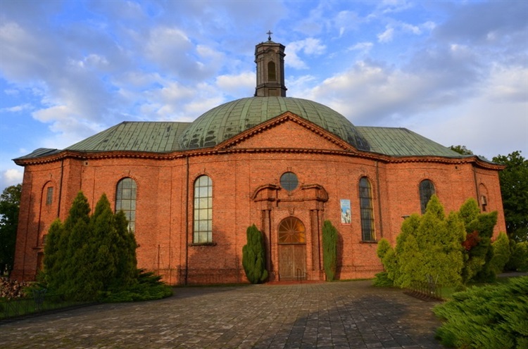 Świątynia jest budowlą wzniesioną z czerwonej cegły z kolistą częścią centralną, nakrytą kopułą zwieńczoną wieżyczką. Wewnątrz świątyni w ołtarzu głównym umieszczony został obraz przedstawiający św. Józefa – patrona świątyni. Przed kościołem ustawiony został głaz z medalionem przedstawiającym papieża Jana Pawła II. Na medalionie widnieją trzy daty: rok urodzenia 1920, rok wyboru na papieża 1978 i 2005 rok śmierci Jana Pawła II. Obok kościoła dzwonnica z trzema dzwonami.