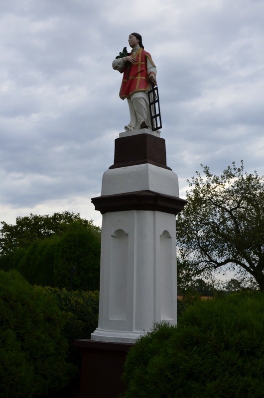 Święty Wawrzyniec – święty Kościoła katolickiego, diakon i męczennik. Wg tradycji poniósł w 258 r. męczeńską śmierć w Rzymie na rozżarzonej do czerwoności kracie (ruszcie). Jest patronem piekarzy, kucharzy, ubogich, bibliotekarzy oraz wszystkich pracujących przy ogniu. Na placu, przed kościołem p.w. św. Jana Ewangelisty na wysokim, kilkustopniowym postumencie stoi figura tego świętego. Jest to kamienna, barokowa rzeźba z kratą, na której był męczony oraz gałązką palmy – symbolem męczeństwa.