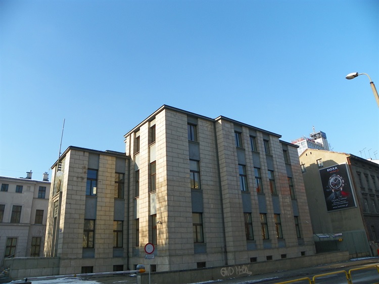Wszystkie elewacje wykonane są z regularnych ciosów kamiennych, które ułożono w formie “murowanego szkieletu budynku” a pomiędzy jego “filarami” osadzono stolarkę okienną. Obszar pod i nad nią wypełniono tzw. ławami podokiennymi. Całość przekryto płaskim dachem. W latach 90. XX wieku, w budynku mieścił się oddział Banku Śląskiego a po wybudowaniu siedziby na ul. Chorzowskiej, pomieszczenia zajęła biblioteka dzisiejszego Śląskiego Uniwersytetu Medycznego.