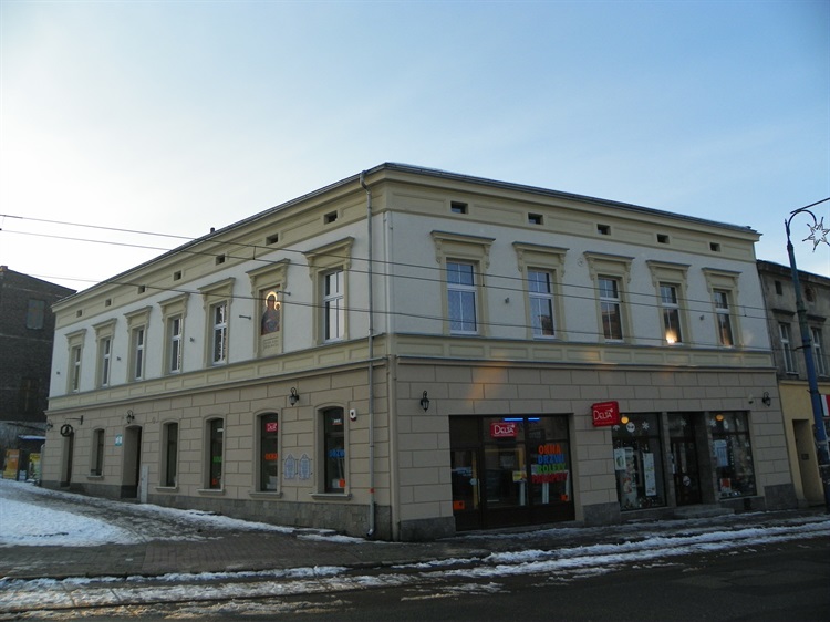 Parter budynku jest boniowany lub imitowany na boniowanie. Pomieszczenia w nim przeznaczono na działalność handlową, stąd być może został on nieco zniekształcony względem pierwotnego wyglądu. Na drugiej kondygnacji - być może na całej jej powierzchni użytkowej - znajduje się część mieszkalna. Uwagę mogą przyciągnąć zdobione opaskami otwory okienne zakończone płaskim naczółkami, a przede wszystkim elewacja boczna, gdzie w jednym z otworów okiennych umieszczona kopia obrazu Matki Boskiej Mysłowickiej. Stolarka okienna jest już prawdopodobnie współczesna ale dostosowana do zdobionych otworów okiennych.