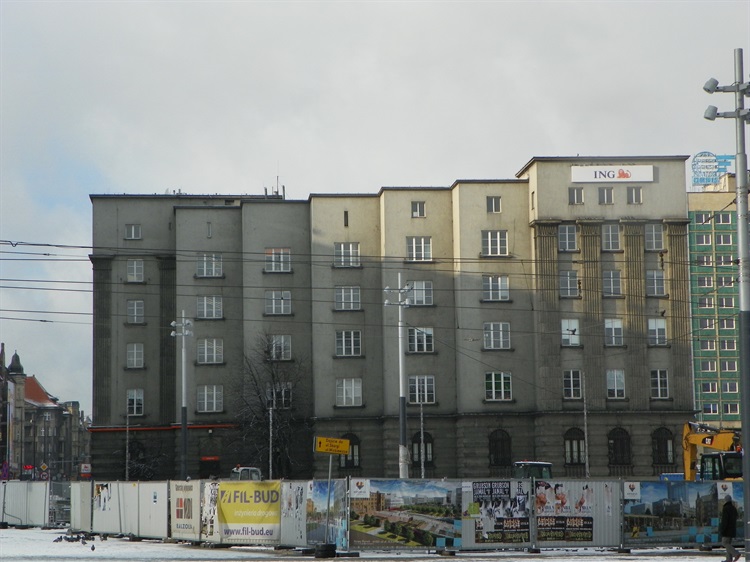 Budynek znajdujący się przy ul. Adama Mickiewicza (a widoczny również od strony Rynku), to jedna z ciekawych budowli w Katowicach - zbudowana w roku 1930 w stylu ekspresjonistycznym, według projektu Jana Noworyty i Stanisława Tabeńskiego. Bez wątpienia uwagę przyciąga jej bryła, która została tak zaprojektowana, by zmieścić się na działce w kształcie trapezu, znajdującej się w latach 30. XX wieku przy nieistniejącej dziś ulicy Skośnej.