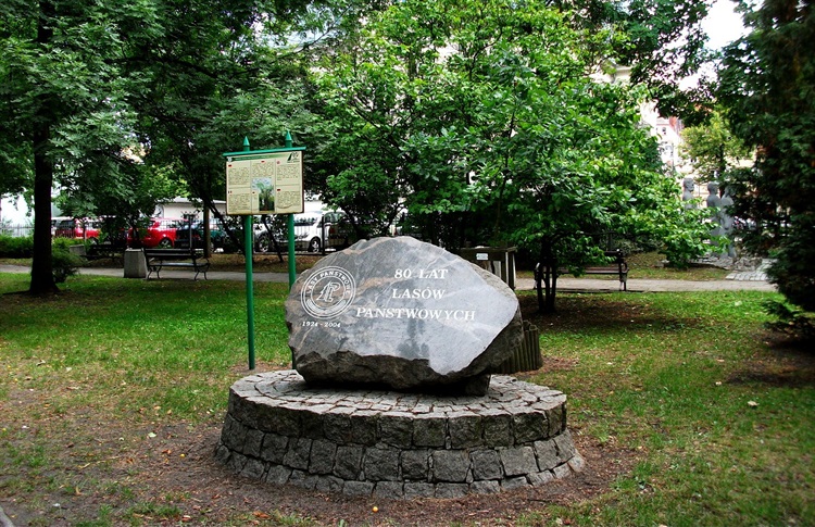 Przed drzewkiem posadowiono na cokole z kostek granitowych głaz narzutowy z okolicznościowym napisem.