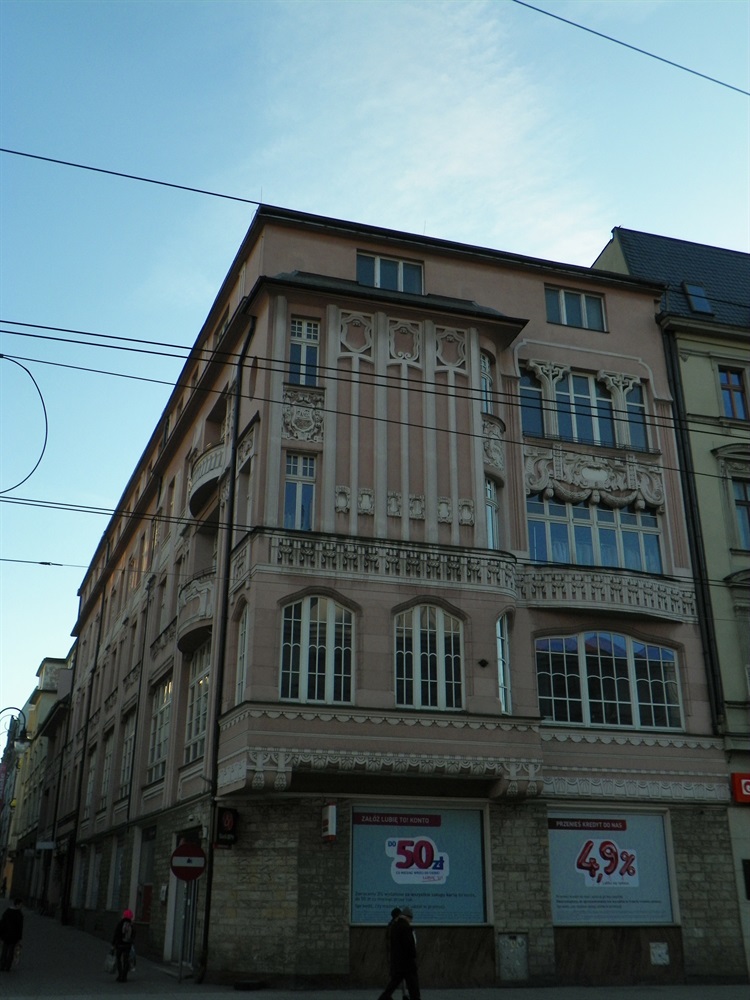 Ulica Dyrekcyjna w Katowicach to jedna z ciekawszych ulic w mieście, rozciąga się między Warszawską a Dworcową. Przy niej zachowała się dość ciekawa zabudowa - głównie kamienic secesyjnych, niektóre z nich są wyjątkowo zdobione. Kamienica pod numerem 10 jest budynkiem narożnym, obejmuje swą bryłą “wejście” w ulicę z częścią elewacji bocznej obejmującej naroże od ul. Warszawskiej. Została zbudowana w roku 1906 w stylu, który jest połączeniem modernizmu z secesją, na rzucie zbliżonym do prostokąta, przekryta płaskim dachem.