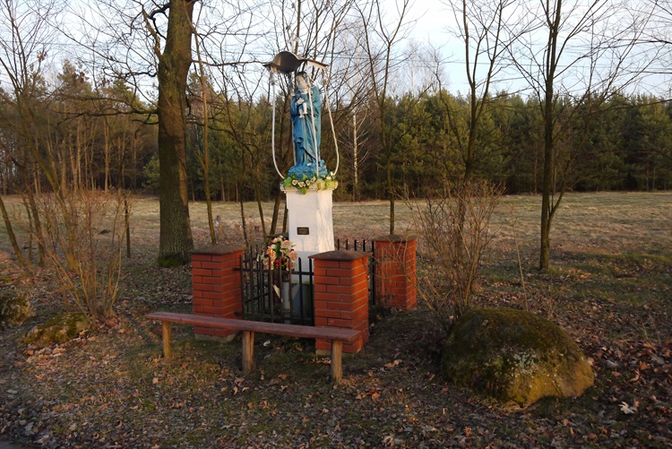 Na skraju wsi, nieopodal rozległych borów stoi figurka Matki Boskiej. To pamiątka po czasach dawnych wyjazdów „za wodę”. Ufundowała ją rodzina Biesiadeckich mieszkająca w Ameryce. To tereny gdzie nikt obcy się nie zapuszcza ale figura stać tam będzie nadal, pięknie odnowiona przez mieszkańca Marek, Józefa Kopcia.