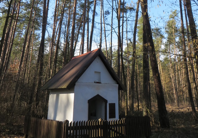 Na niewielkiej polance stoi murowana, domkowa kapliczka pokryta blachą, niegdyś był gont. Na jej froncie zamontowana jest żeliwna tabliczka, jedna z wielu identycznych upamiętniających miejsca związane z powstaniem styczniowym, a ufundowana przez Stanisława Jeżewskiego - działacza PTTK regionu ostrowieckiego. Ogrodzona jest płotkiem, we wnętrzu wisi krzyż i stoi niewielka figurka Matki Boskiej. Podczas powstania styczniowego, ks. Kacper Kotkowski odprawiał tu msze dla tworzącego się oddziału powstańczego.