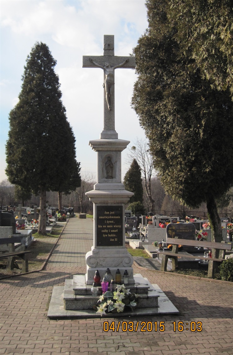 Krzyż z 1887 roku znajduje się na cmentarzu nieopodal kościoła należącego do parafii Narodzenia Św. Jana Chrzciciela. Cmentarz zlokalizowano na wzgórzu, z którego jest dobry widok na okolicę.