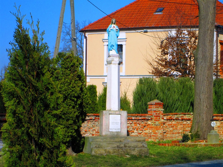 W Rąbiniu przy kościele p.w. Świętych Apostołów Piotra i Pawła znajduje się figura Matki Boskiej. Ufundowana została na pamiątkę ofiarowania parafii Niepokalanemu Sercu Marii dnia 7 lipca 1946 roku. Figura Matki Boskiej w niebieskiej szacie umieszczona jest na wysokiej kolumnie pod którą na cokole dojrzeć możemy tablicę pamiątkową.