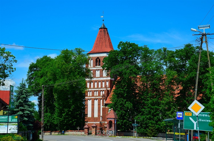 Pierwsze wzmianki o istnieniu kościoła w Lubominie możemy odnaleźć w dokumentach lokacyjnych z początku XIV wieku, pierwotna budowla najprawdopodobniej była drewniana. Obecna, utrzymana w stylu gotyckim i jednonawowa świątynia wzniesiona została w latach 1340 – 1370. Ośmioboczna wieża, wzorowana na starszej wieży farnej w Ornecie zbudowana została wówczas tylko w dolnej kondygnacji. Podwyższano ja w dwóch etapach, a ostateczne prace zakończono w 1480 roku.