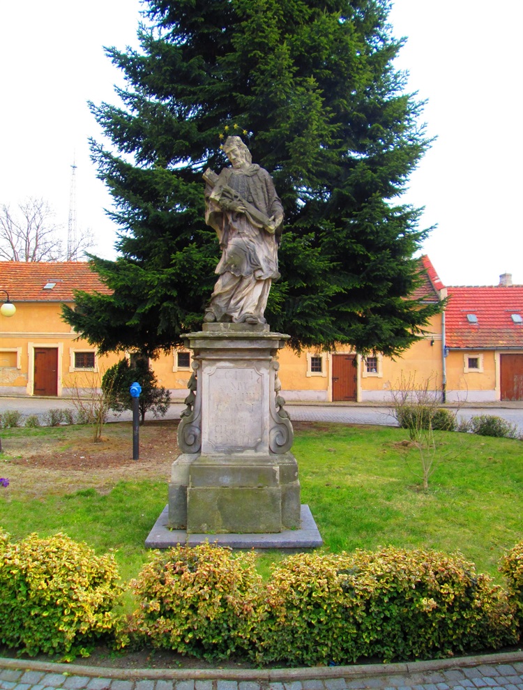 Jedną z dwóch figur św. Jana Nepomucena znajdujących się w Trzebnicy zobaczyć możemy na dziedzińcu klasztornym od strony ulicy księdza Wawrzyńca Bochenka. Święty przedstawiony jest w gwiezdnej aureoli. W rękach trzyma krzyż będący jego atrybutem. Wcześniej figura stała na przyczółku nieistniejącego mostu na rzece Lubsza, w miejscu skrzyżowania obecnych ul. Bochenka i ul. Klasztornej.